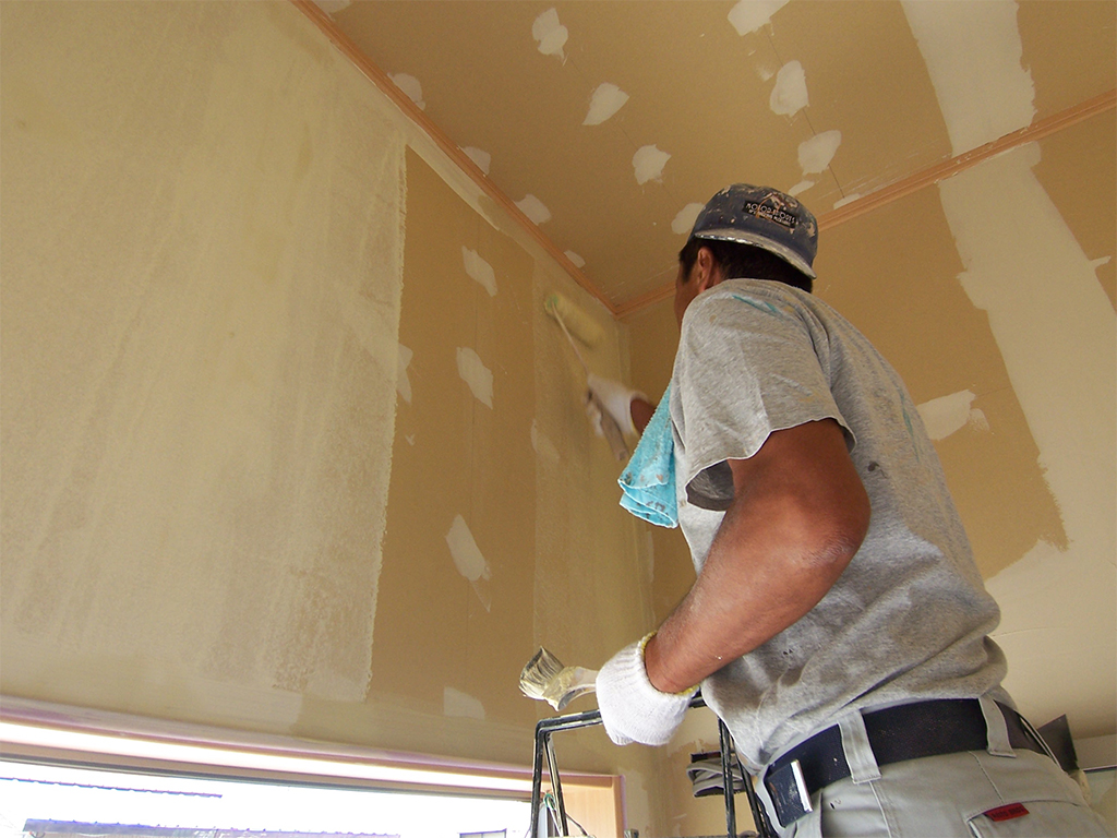 お部屋の内装を、壁紙を張らずにリバースコートを複数回塗って仕上げることで、化学物質の低減・消臭・調湿というリバースコートの特長を最大限発揮することができます。